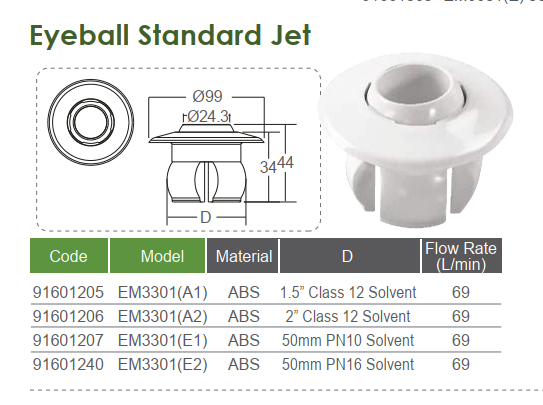 | Tên sản phẩm | Đầu trả nước bể bơi EM3301(A2) |