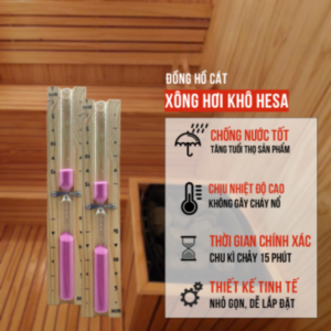 Đồng hồ cát 15 phút cát hồng là phụ kiện được sử dụng để tính được thời gian xông hơi, mỗi lượt cát chảy mất 15 phút, cũng là thời gian khuyến cáo cho mỗi lần xông hơi.