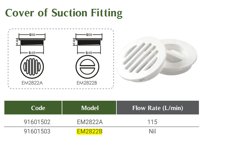 | Nắp che đầu hút vệ sinh bể bơi Emaux EM28822B | |